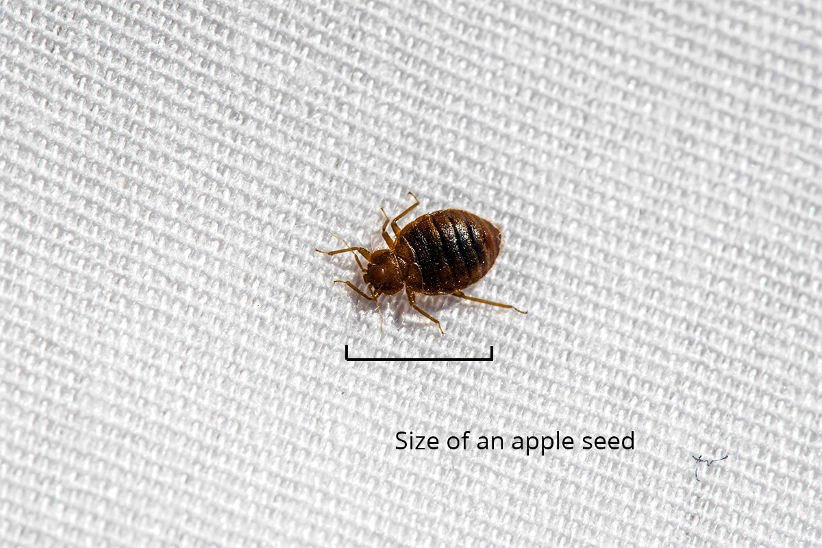 Adult bed bugs have a flat oval-shaped body, which is light brown in colour and may become red and engorged after a blood meal.